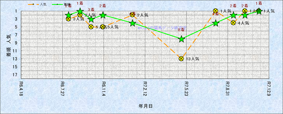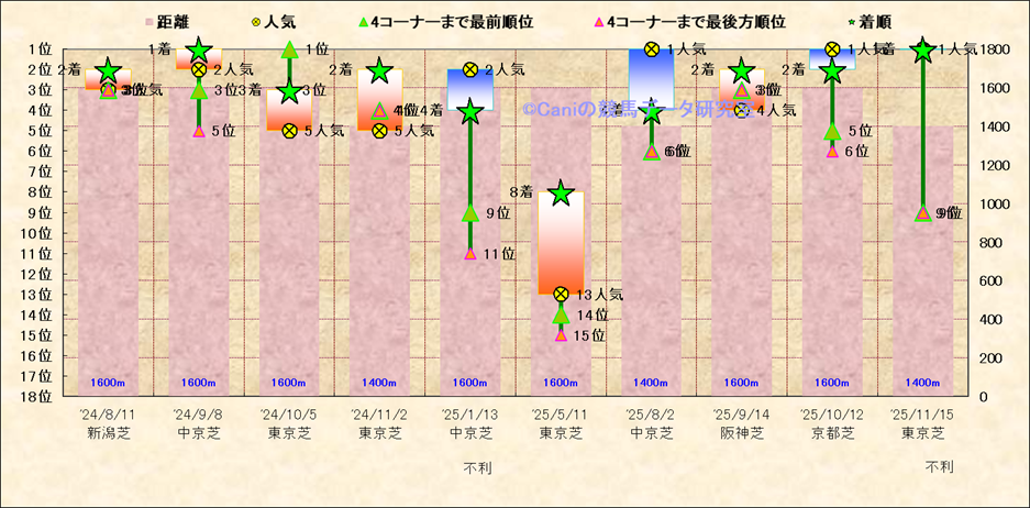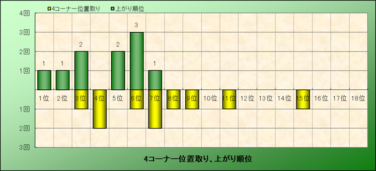 脚質解析 近20レースの4コーナーでの位置取りと上がり順位(頭数補正後) |