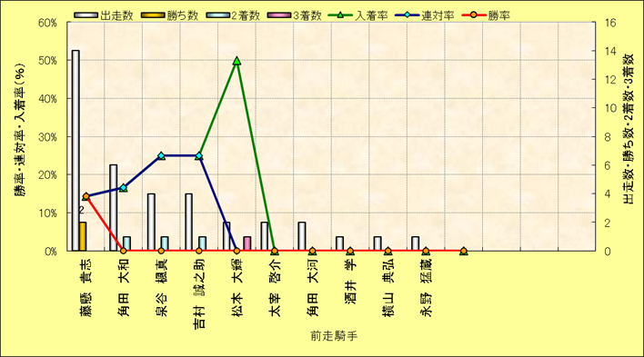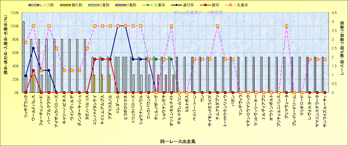ライバル(相性)解析 同一レースに下記馬が出走した場合の成績とその馬に先着する先着率 |