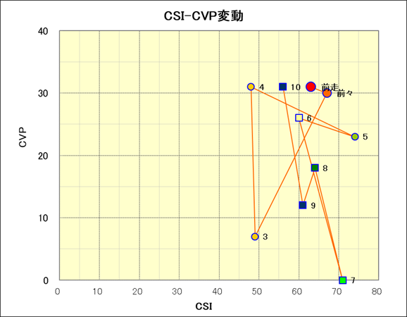 近走における4コーナーでの位置取りと上がり順位(頭数補正後) |