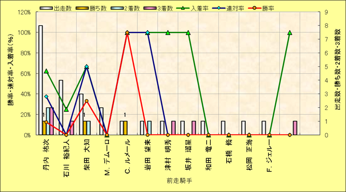 ライバル(相性)解析 同一レースに下記馬が出走した場合の成績とその馬に先着する先着率 |