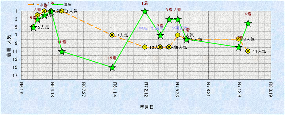 脚質解析 近20レースの4コーナーでの位置取りと上がり順位(頭数補正後) |