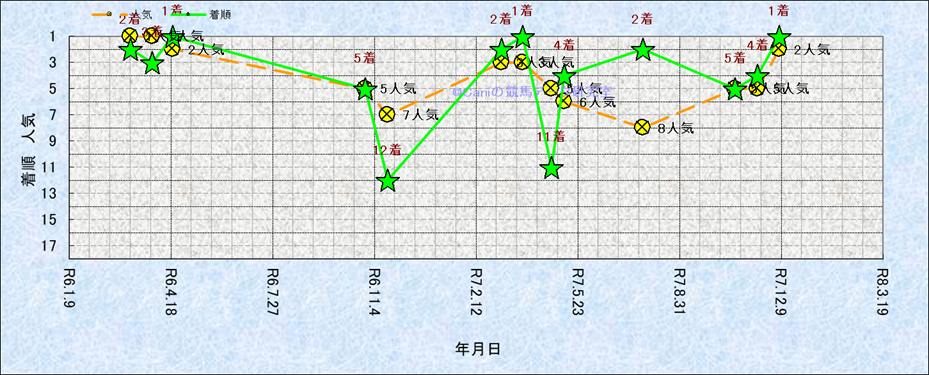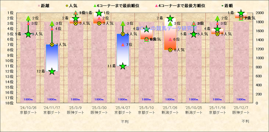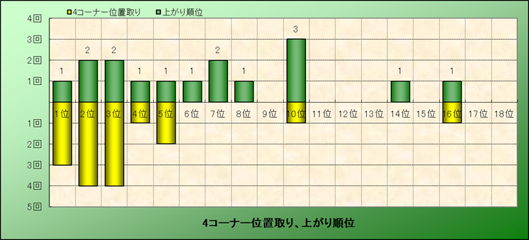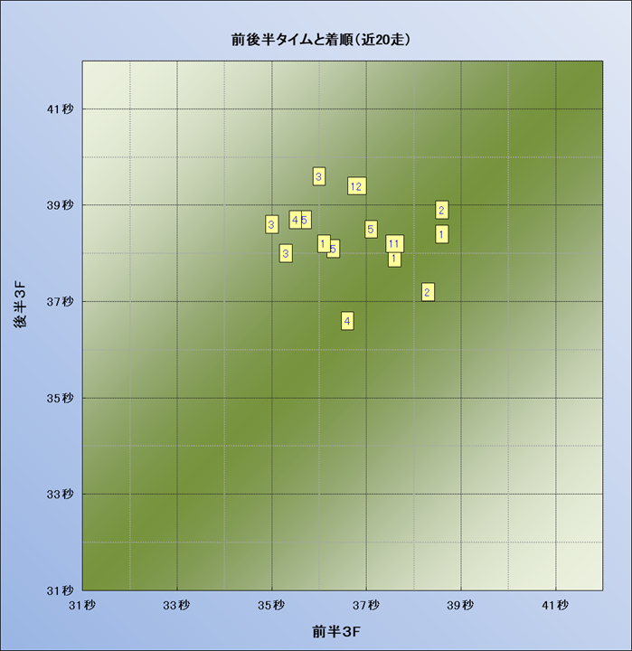 脚質解析 近20レースの4コーナーでの位置取りと上がり順位(頭数補正後) |