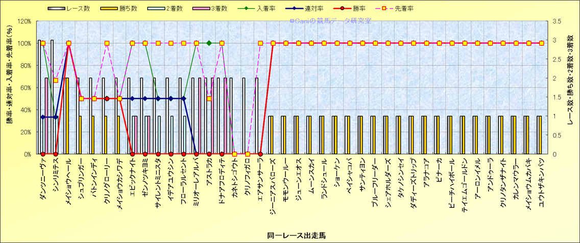 ライバル(相性)解析 同一レースに下記馬が出走した場合の成績とその馬に先着する先着率 |