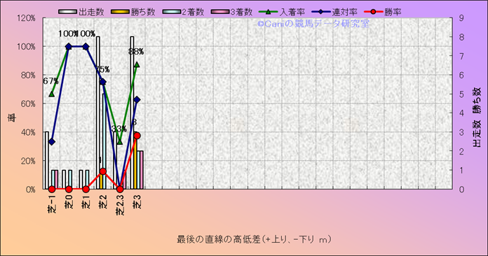 コース、最後の直線の高低差別成績(平地) |