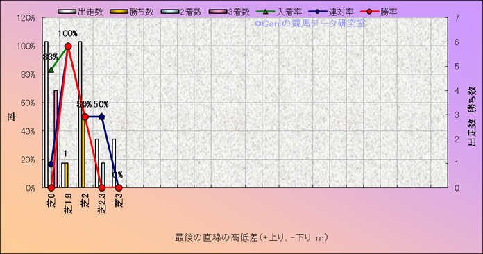 コース、最後の直線の高低差別成績(平地) |