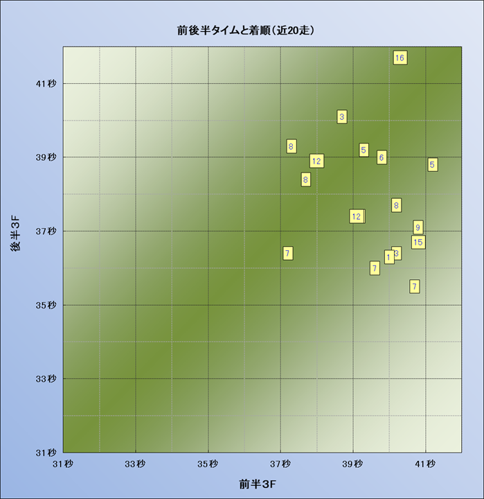 脚質解析 近20レースの4コーナーでの位置取りと上がり順位(頭数補正後) |