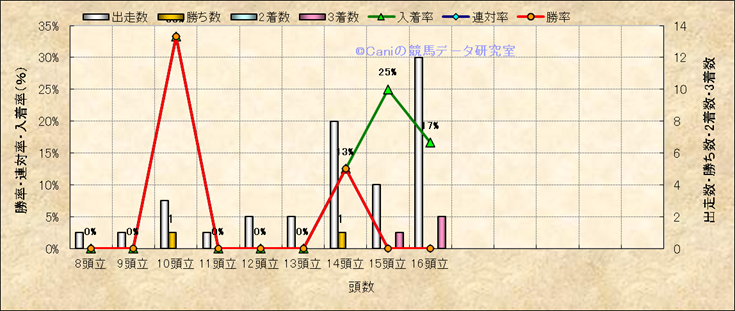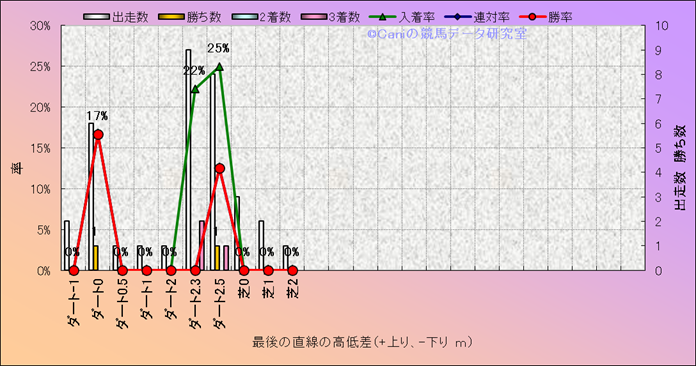 コース、最後の直線の高低差別成績(平地) |