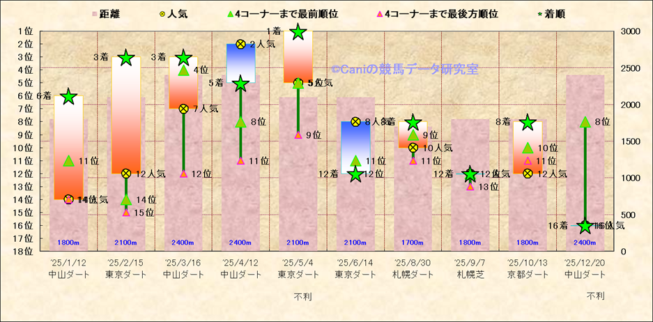 近10走 人気−着順-位置取りの推移 |