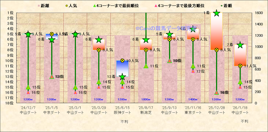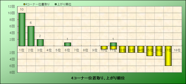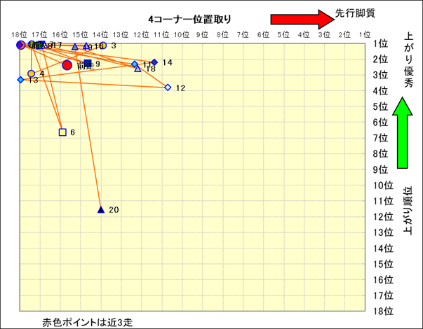 脚質解析 近20レースの4コーナーでの位置取りと上がり順位(頭数補正後) |