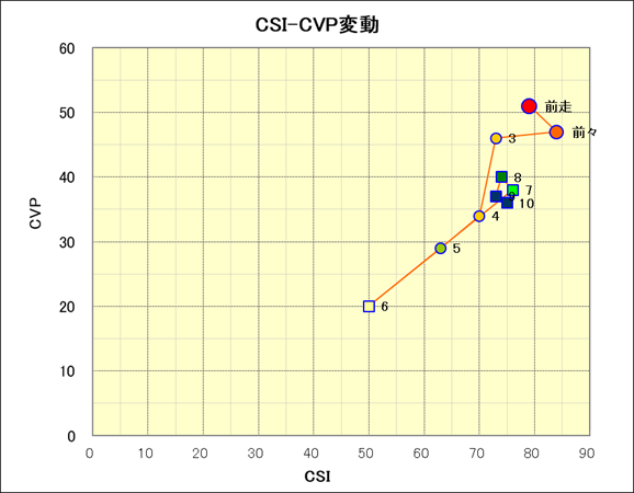 近走における4コーナーでの位置取りと上がり順位(頭数補正後) |