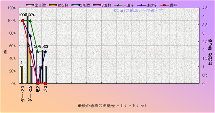 コース、最後の直線の高低差別成績(平地) |