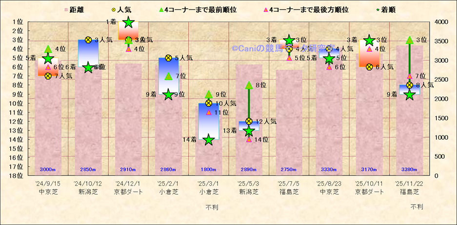 近10走 人気−着順-位置取りの推移 |