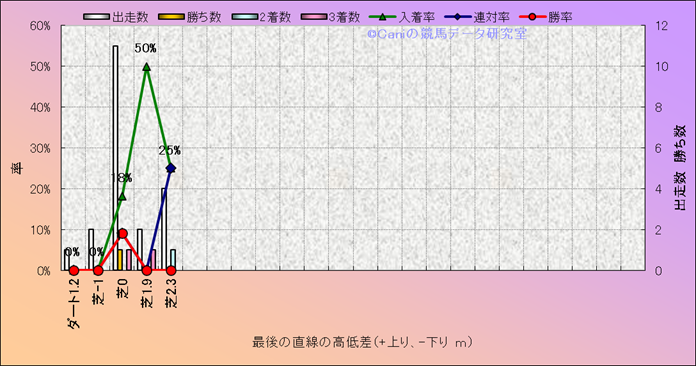 コース、最後の直線の高低差別成績(平地) |