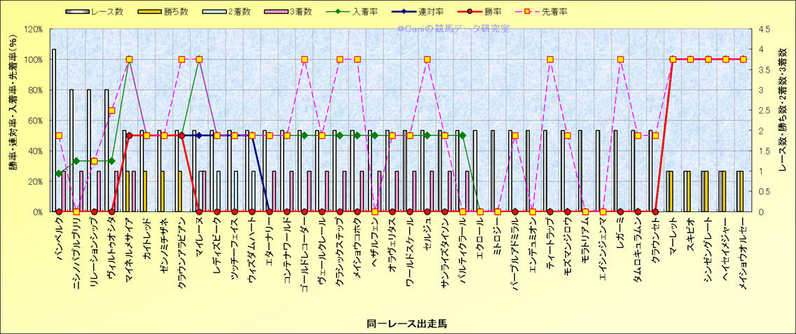 ライバル(相性)解析 同一レースに下記馬が出走した場合の成績とその馬に先着する先着率 |