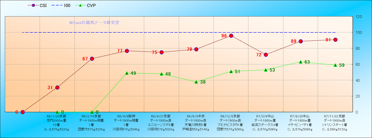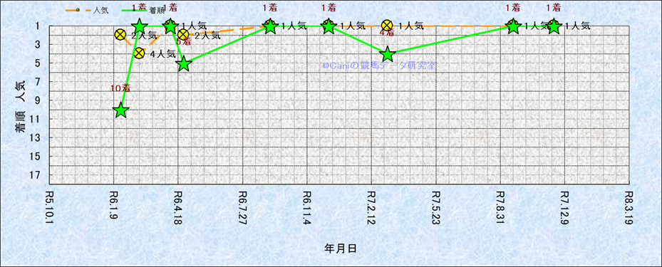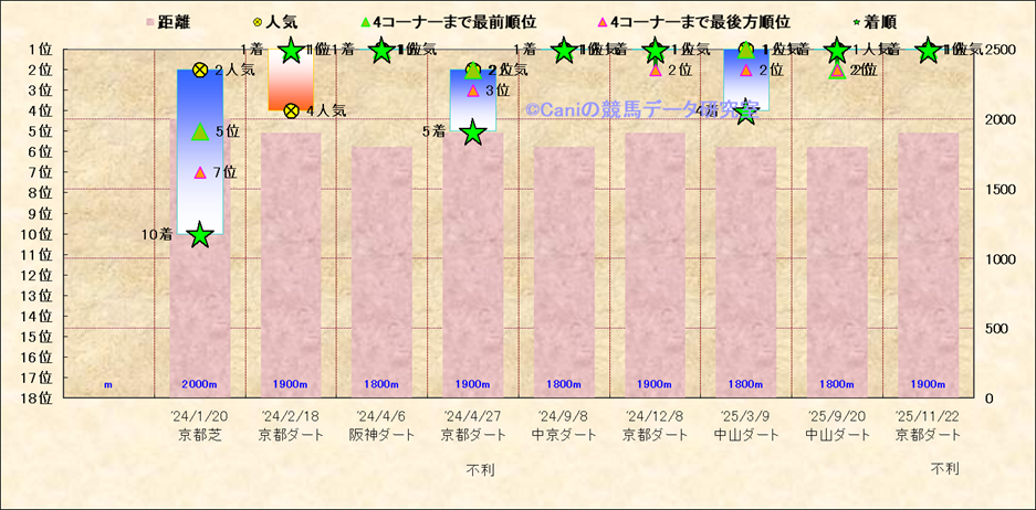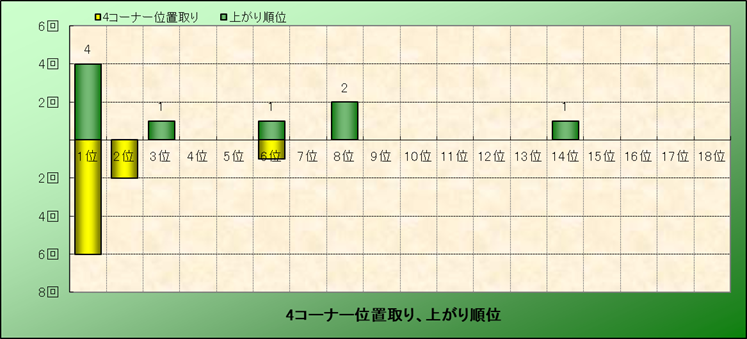 脚質解析 近20レースの4コーナーでの位置取りと上がり順位(頭数補正後) |