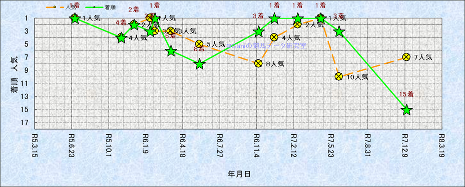 脚質解析 近20レースの4コーナーでの位置取りと上がり順位(頭数補正後) |