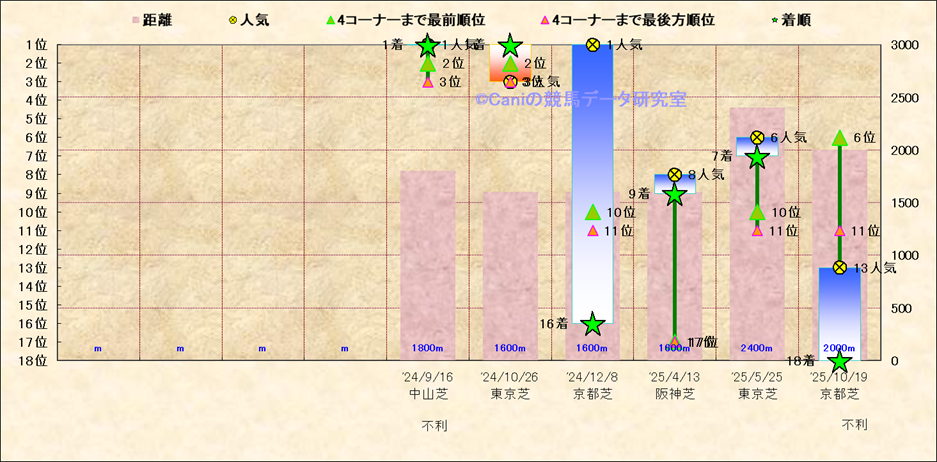 近10走 人気−着順-位置取りの推移 |