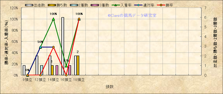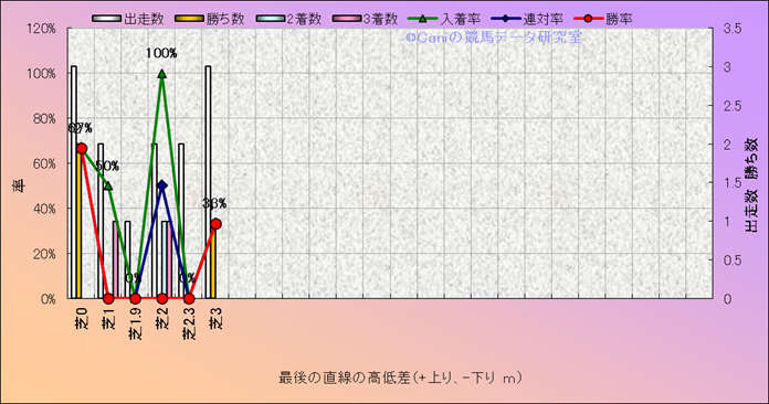 コース、最後の直線の高低差別成績(平地) |