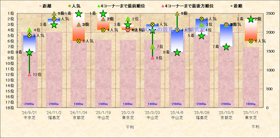 近10走 人気−着順-位置取りの推移 |