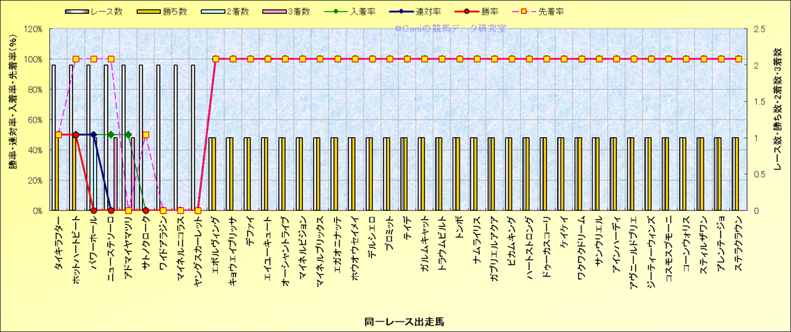 ライバル(相性)解析 同一レースに下記馬が出走した場合の成績とその馬に先着する先着率 |