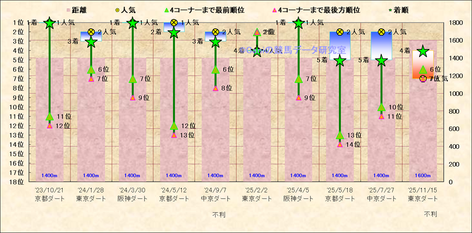 近10走 人気−着順-位置取りの推移 |