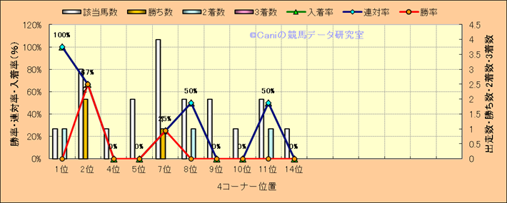 近走における4コーナーでの位置取りと上がり順位(頭数補正後) |