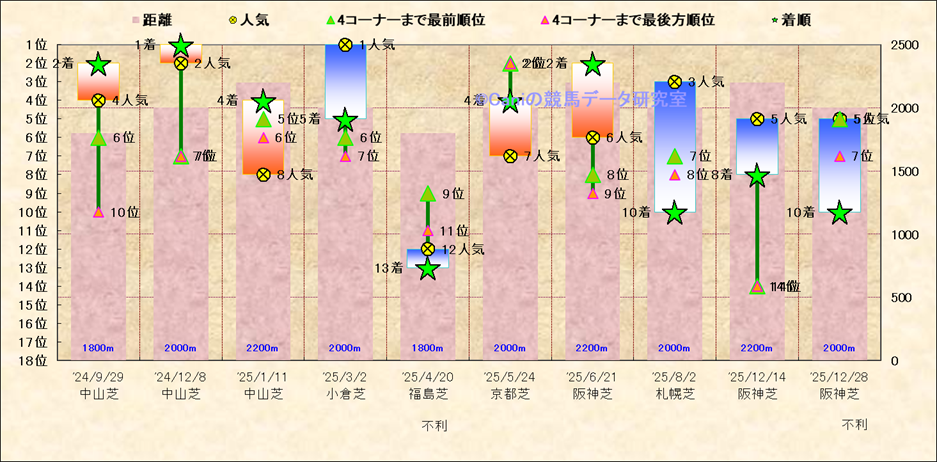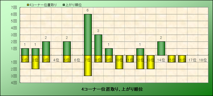 脚質解析 近20レースの4コーナーでの位置取りと上がり順位(頭数補正後) |