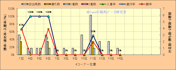 近走における4コーナーでの位置取りと上がり順位(頭数補正後) |