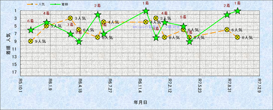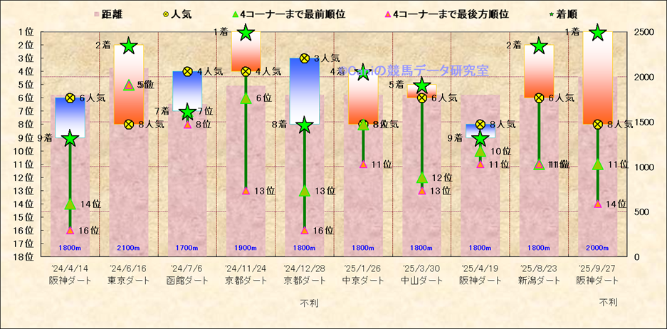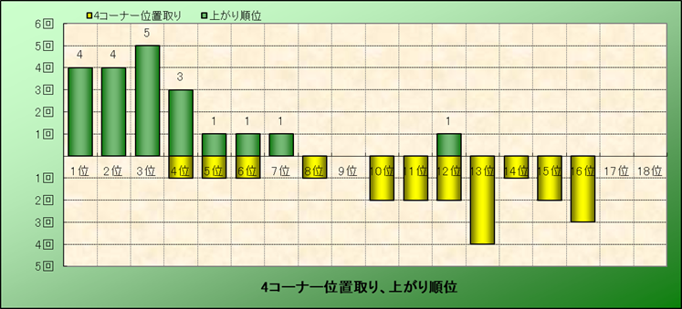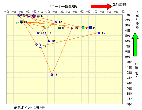 脚質解析 近20レースの4コーナーでの位置取りと上がり順位(頭数補正後) |