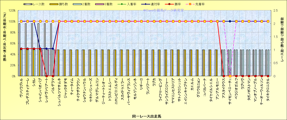 ライバル(相性)解析 同一レースに下記馬が出走した場合の成績とその馬に先着する先着率 |