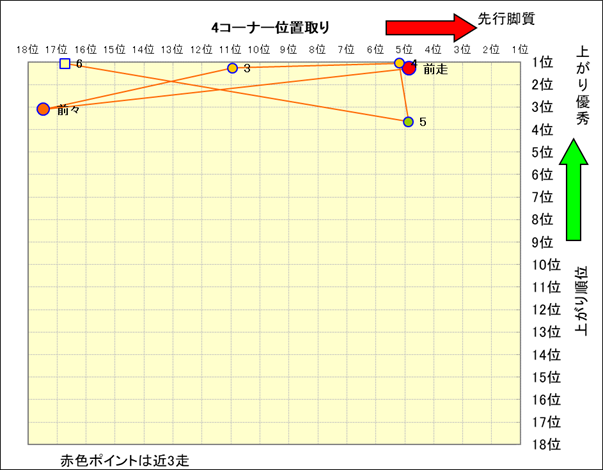 近走における4コーナーでの位置取りと上がり順位(頭数補正後) |