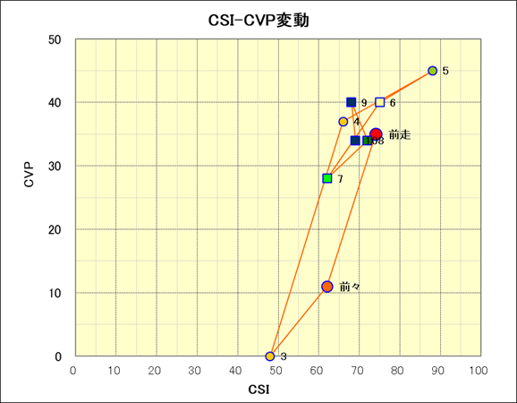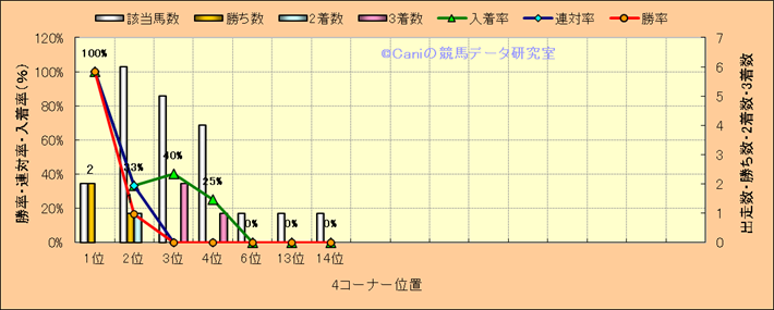 近走における4コーナーでの位置取りと上がり順位(頭数補正後) |