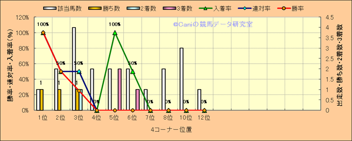 近走における4コーナーでの位置取りと上がり順位(頭数補正後) |