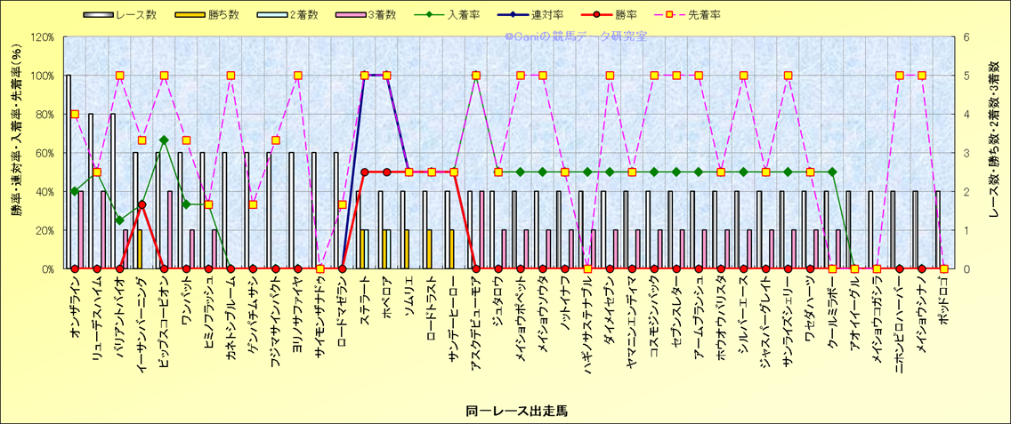 ライバル(相性)解析 同一レースに下記馬が出走した場合の成績とその馬に先着する先着率 |