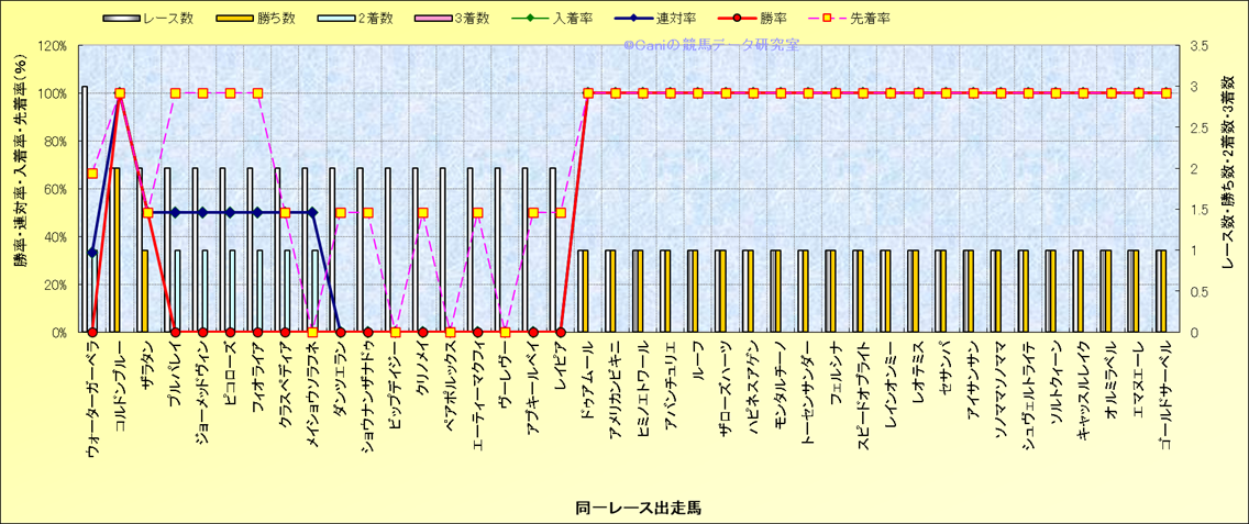 ライバル(相性)解析 同一レースに下記馬が出走した場合の成績とその馬に先着する先着率 |