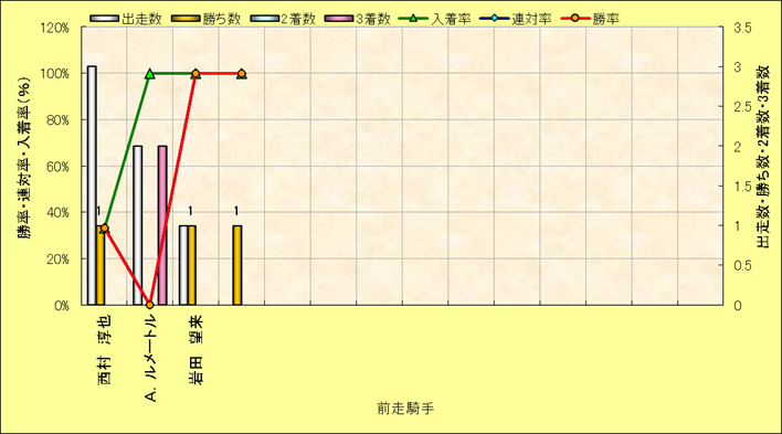 ライバル(相性)解析 同一レースに下記馬が出走した場合の成績とその馬に先着する先着率 |