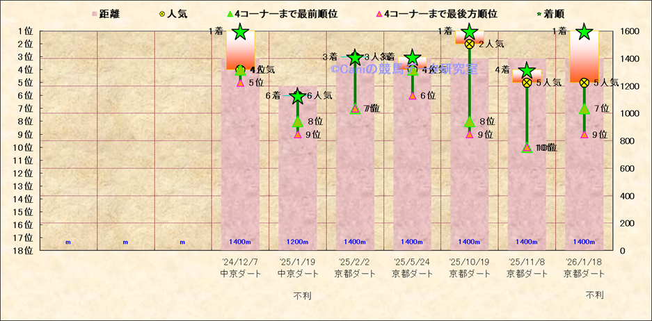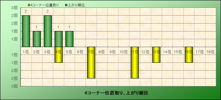 脚質解析 近20レースの4コーナーでの位置取りと上がり順位(頭数補正後) |
