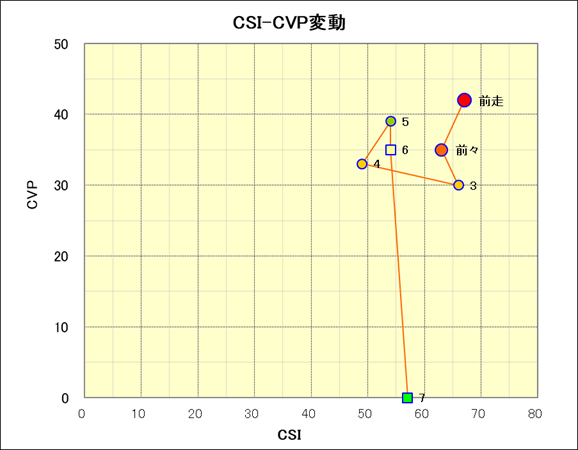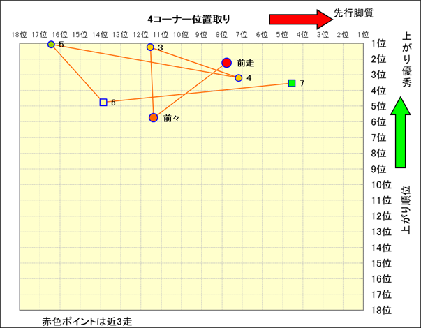 近走における4コーナーでの位置取りと上がり順位(頭数補正後) |
