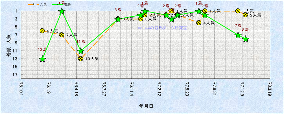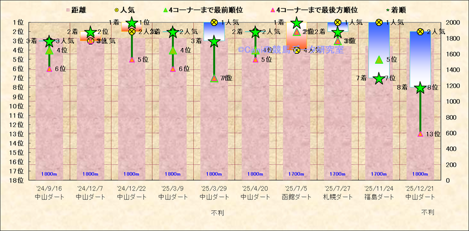 脚質解析 近20レースの4コーナーでの位置取りと上がり順位(頭数補正後) |