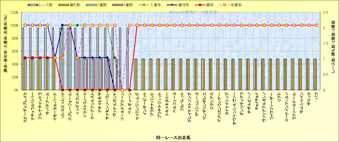 ライバル(相性)解析 同一レースに下記馬が出走した場合の成績とその馬に先着する先着率 |