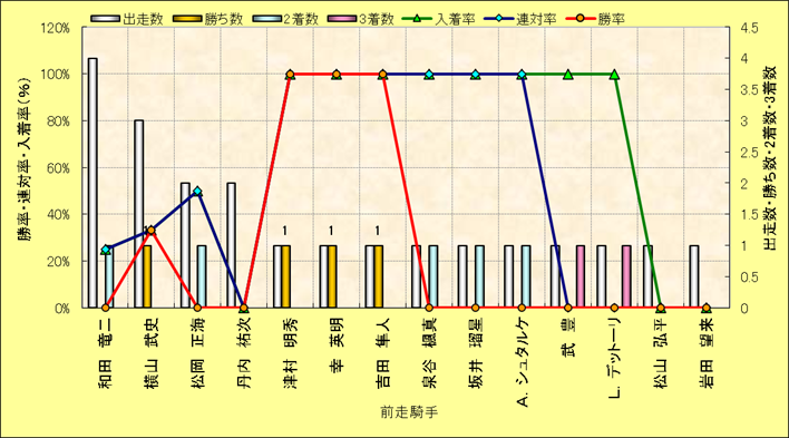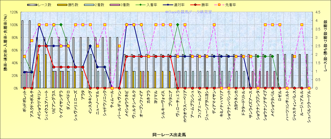 ライバル(相性)解析 同一レースに下記馬が出走した場合の成績とその馬に先着する先着率 |