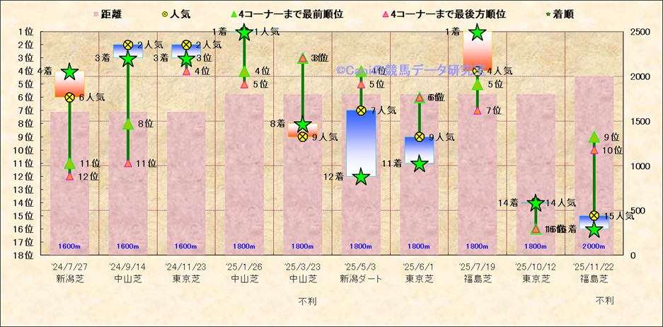 近10走 人気−着順-位置取りの推移 |