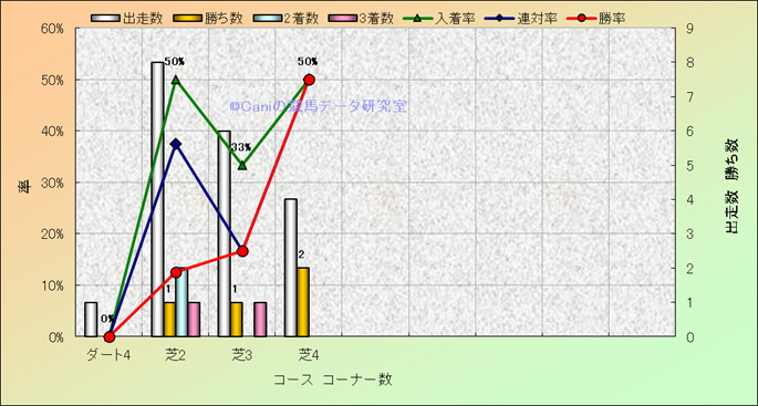 コース、コーナー数別成績(平地) |
