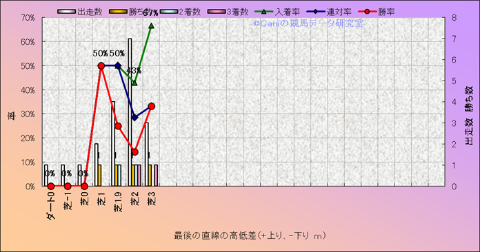 コース、最後の直線の高低差別成績(平地) |