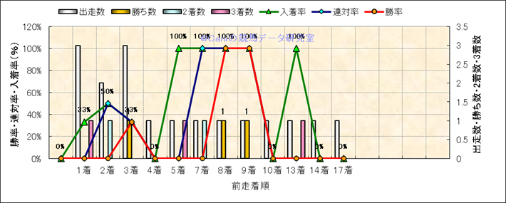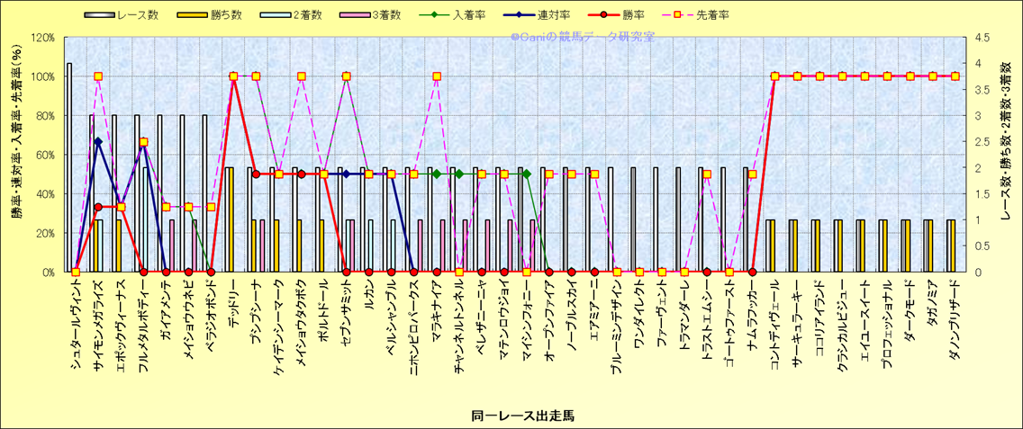 ライバル(相性)解析 同一レースに下記馬が出走した場合の成績とその馬に先着する先着率 |