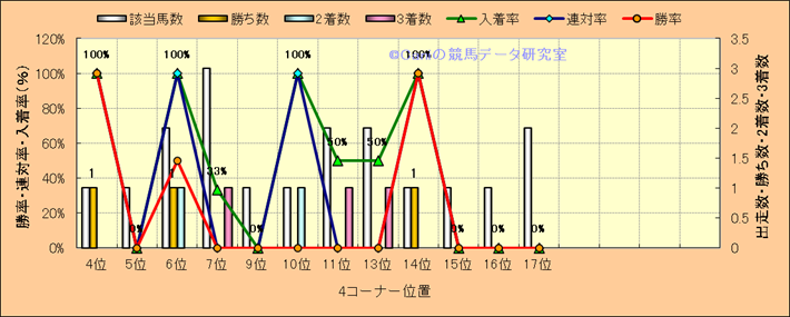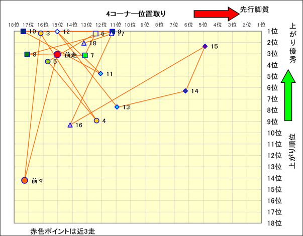 近走における4コーナーでの位置取りと上がり順位(頭数補正後) |