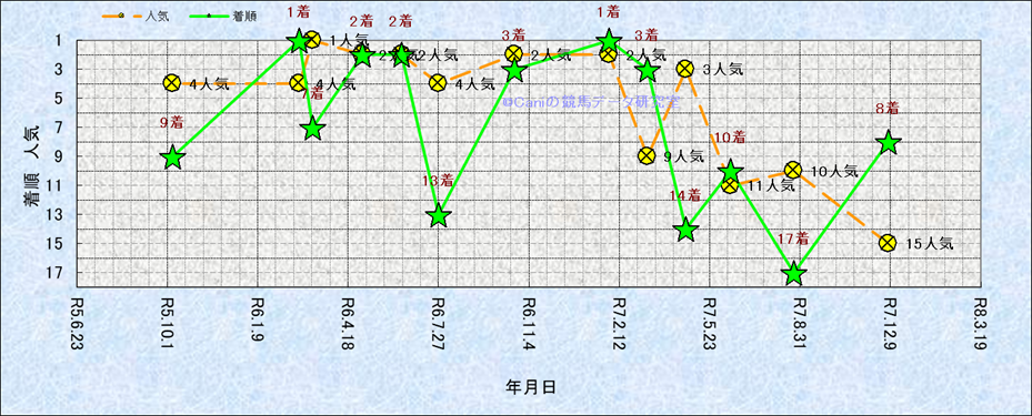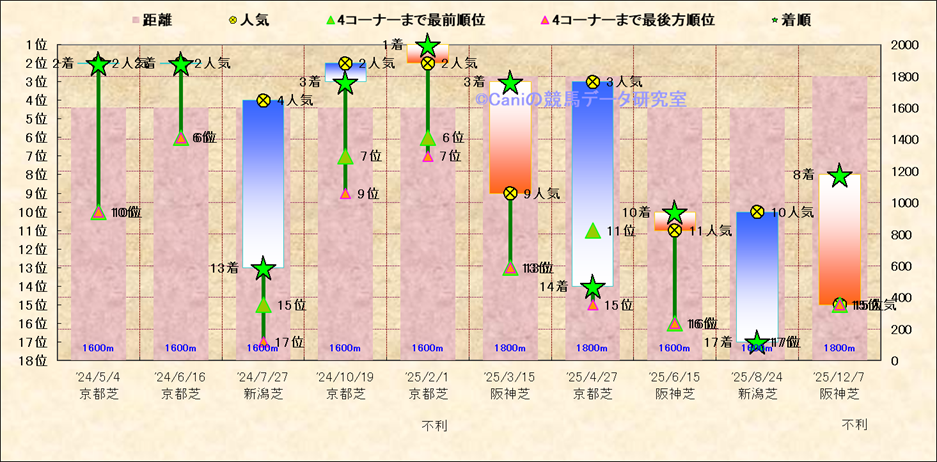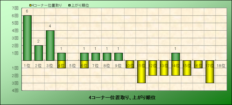 脚質解析 近20レースの4コーナーでの位置取りと上がり順位(頭数補正後) |