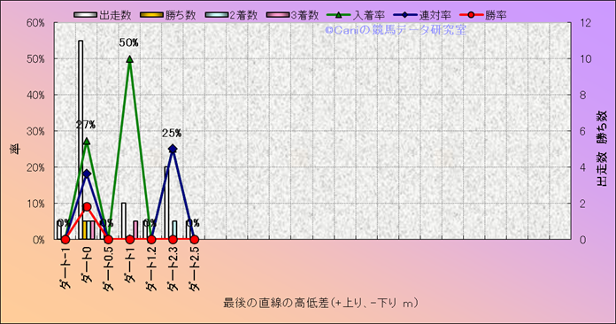 コース、最後の直線の高低差別成績(平地) |