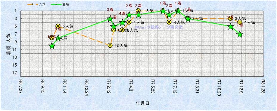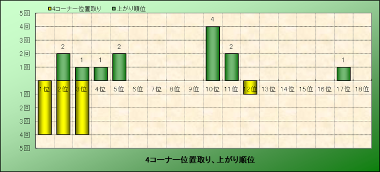 脚質解析 近20レースの4コーナーでの位置取りと上がり順位(頭数補正後) |