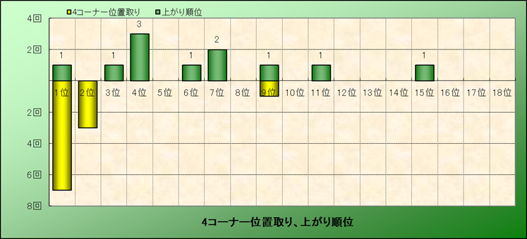 脚質解析 近20レースの4コーナーでの位置取りと上がり順位(頭数補正後) |